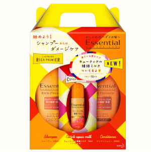 【7月5日10:00からエントリーで全品10倍】【エントリーでポイント10倍 ※7/5日朝10時開始!】【お得なペアパック】【数量限定】花王 エッセンシャル ダメージケア リッチプレミア シャンプー・コンディショナー【+キューティクル補修ミルクミニボトル付】