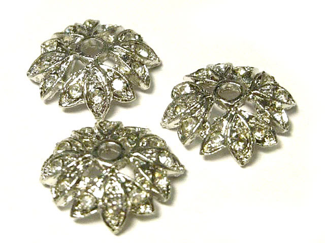 高級感アップ!煌びやかに作りたい方へビーズキャップxラインストーン フラワーデザイン 座金 ロジウム 約16mm (20個セット)
