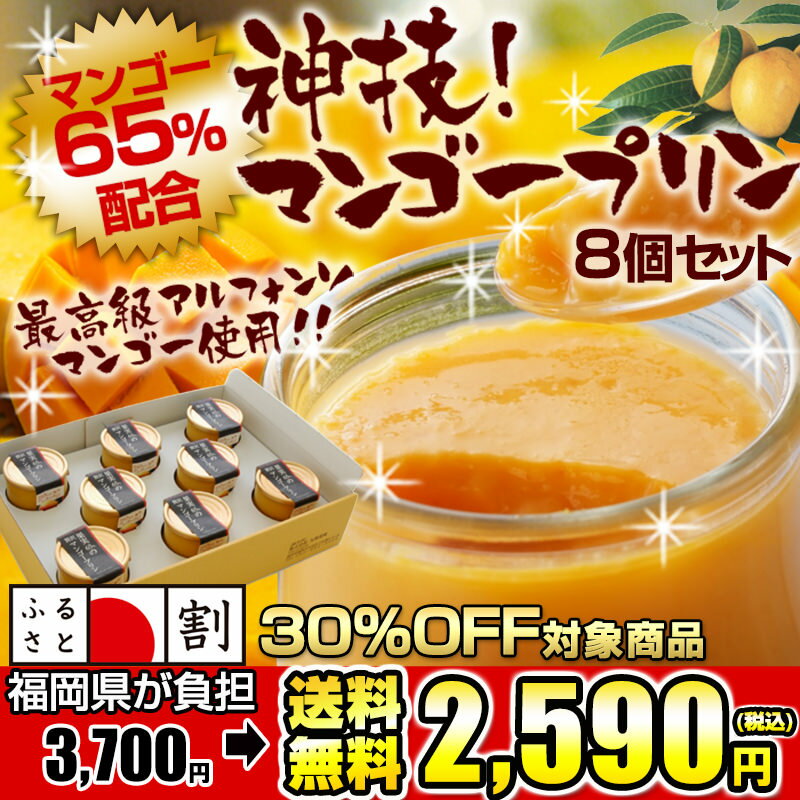 ふるさと割 濃厚!最高級 神技マンゴープリン130g×8個入【送料無料3,700円】【福岡_物産展】「アルフォンソマンゴー」を65%配合!ギフト プレゼントにも♪【あす楽対応】【楽ギフ_包装】【楽ギフ_メッセ】【お歳暮】〇最高級!神技マンゴープリン8個セット